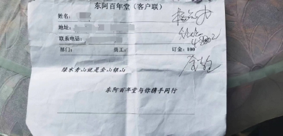 2天后,小慧的父母如期返回家中。然而,这一次,跟随两位老人一同回来的,并非是旅游留下的快乐记忆或漂亮的风景照,而是几大包各式各样的商品,包括2套牛皮凉席、2条高科技被子、2盒阿胶片、若干外用药膏、10多双皮拖鞋以及4瓶酒。所有的商品,都源自于江苏某地一家名为“东阿百年堂”的店铺,总价超过1万元。
