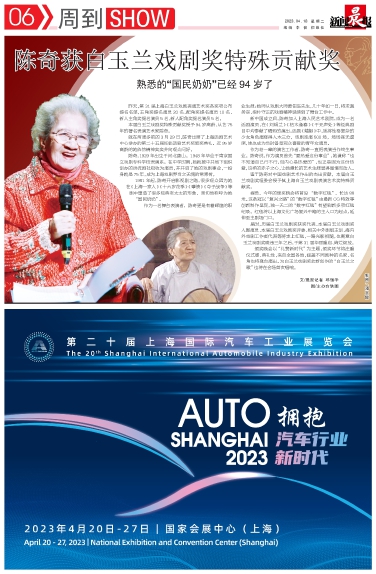 本届白玉兰戏剧奖特殊贡献奖授予94岁高龄、从艺75年的著名表演艺术家陈奇。