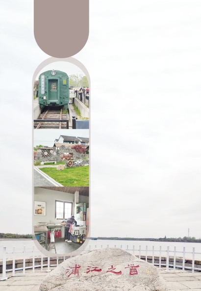 在石湖荡镇东夏村浦江之首的入口处,记者远远就看到了一辆绿皮火车停靠在站牌旁,这一极具年代感的场景吸引了不少市民、游客走近打卡。