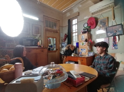 他家的房子其实蛮旧的,五六十年代的样子,墙漆有一点剥落,地板颜色也有点陈旧,但是这是一种原汁原味,让人踏实的感觉。房间挑高很高,那天的阳光又特别明媚。他很从容地泡杯茶放在窗台旁边,冒着烟,然后就坐在那边开始说了。他是哪一年搬到这里来的、全家多少口人搬来的、房间是怎么分配的、爸爸平时在哪个位置工作,我的脑海就跟着他的叙述展开想象了。