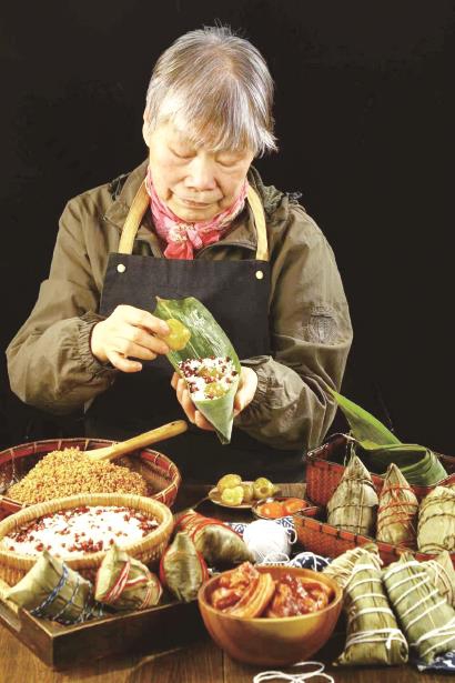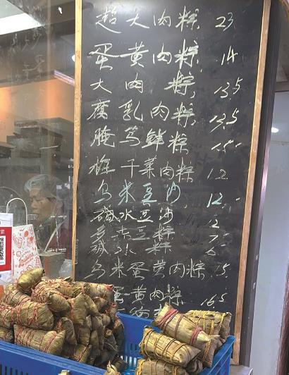 吴阿婆比许多年轻人还要有创新意识。她的店内不仅有20多种粽子口味,前两年还推出了龙舟包装的“全家福粽”,先是1斤装,后来升级成1.2斤装,一个端午季可以卖掉上千只。不过吴阿婆谦逊地说,做这等“巨无霸粽”,主要是想给其他粽子带带名气。