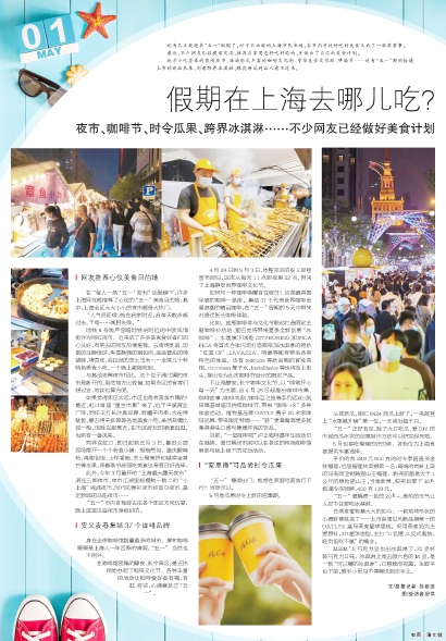 地方小吃荟萃的热闹夜市、活动形式丰富的咖啡文化街、中华美食文化巡、啤酒节……还有“五一”期间恰逢上市的新品瓜果、创意跨界冰淇淋,眼花缭乱到让人看不过来。