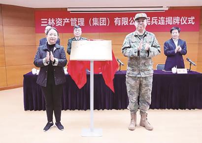 三林镇为进一步加强民兵队伍建设,在新区武装工作提出新要求后,为打牢后备力量建设基础,成立了一支素质过硬的民兵连,民兵连的建设走在了新区前列。活动伊始,翁俊军、徐闽共同为三林资产管理(集团)有限公司民兵连揭牌。翁俊军政委作了重要讲话,对三林镇武装部和民兵工作者矢志国防、忠诚奉献的崇高精神和实际行动表示诚挚敬意。并对民兵连提出了3个要求,有效增强了民兵的身份认同感、加入民兵队伍的使命感与荣誉感。