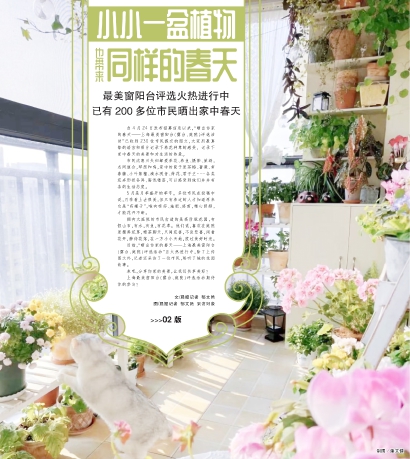 自4月24日发布招募信息以来,“晒出你家的春天——上海最美窗阳台(露台、庭院)评选活动”已收到230位市民提交的图文,大家用最真挚的语言和照片记录下养花种草的感受,记录下家中春天的美景和对生活的热爱。