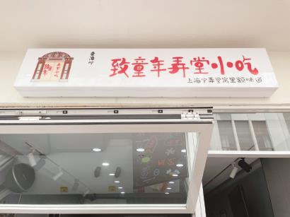 随后,节目组又来到一家蛮有上海腔调的小店,这家店的店招很有意思:“桑海咛:致童年弄堂小吃——上海宁弄堂窝里额咪道”,店招上几乎用的全是沪语。