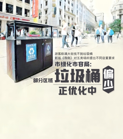 市绿化市容局相关负责人昨天表示,已完成《上海市道路、公共广场等废物箱配置导则》修订,确实发现部分区域存在道路废物箱偏少现象,正在进行优化调整中。
