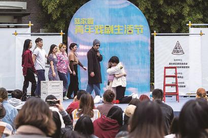 “让戏剧艺术成为陆家嘴乃至浦东青年的日常生活之一。”活动组委会负责人介绍,青年竞演是活动的重头戏。来自高校和白领群体的10家剧社轮流演出,现场观众化身评委,为他们所喜爱的表演投票,反响十分热烈。为了呈现更多元的戏剧表演,音乐剧、亲子戏剧也加入节目单。除此之外,戏剧工作坊与沙龙讲座也倍受年轻人喜爱。