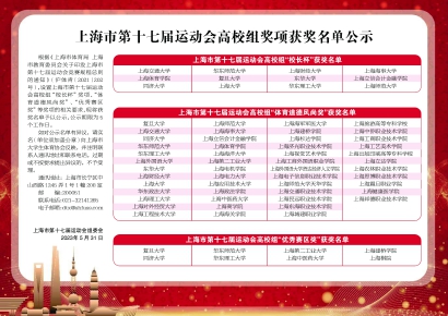 上海市第十七届运动会高校组奖项获奖名单公示