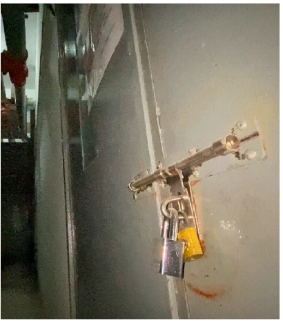 上房物业项目经理连军说道:“这也是无奈之举。既然我们进场了,就要负起管理责任。每次进泵房,我们两家物业都要事先联系,一起到场,各自开锁才能一起进去。单方面都进不去。”