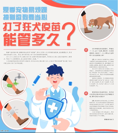 随着气温逐渐升高,猫猫狗狗也容易“有情绪”,再加上夏季人们多穿着短袖短裤,皮肤暴露在外,更容易被动物抓伤、咬伤。因此,每年夏季是犬伤门诊疫苗接种的高峰期。