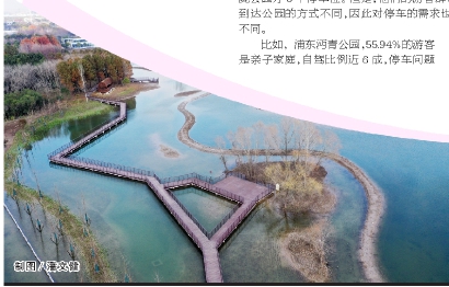 比如,浦东沔青公园,55.94%的游客是亲子家庭,自驾比例近6成,停车问题较为突出。而闵行梅陇生态公园,85.45%的游客是周边居民,以步行到达为主,停车矛盾暂不突出。