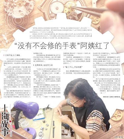 老顾客都知道,黄阿姨做事仔细,修不好的手表还不收钱,平常加油、小修小弄不换零件都不要钱。久而久之,大家把手表放在她这里,总是特别放心。