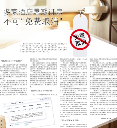 记者以客人身份致电询问该酒店预订部,工作人员表示因为暑期需求旺盛,入住率高,所以这个时间段里预订都不能免费取消,通过第三方平台预订也是一样。她也承认除了暑假之外,其他时间确实有能免费取消的房价可供选择。