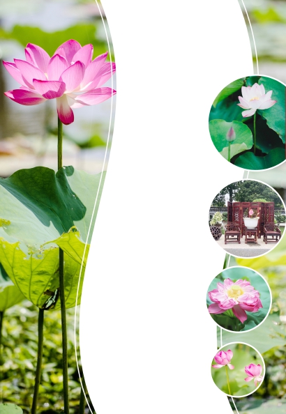 游船码头附近出现的是复色莲和黄莲品种,复色莲为“建选17号”和“单洒锦”两个品种,它们的花瓣以白色为主,尖端和边缘部分镶有红色的镶边,花托心黄边绿,观赏价值很高。黄色莲品种以“友谊牡丹莲”为主,它的花色呈淡黄色,花态杯状,花姿丰满,是荷花中少有的黄色品种。