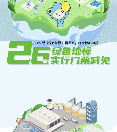 2023年版《绿色护照》共遴选26家绿色地标实行门票减免,包括科普场馆、生态公园、绿色工厂、红色基地等场景,将向社会发放3000册。