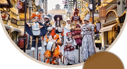 你是否见过天外的来客、史前的恐龙?又或者十里洋场的上海滩以及未来的魔都?在上海千古情景区,那条充满着历史印记的穿越街,流光溢彩的老上海尽收眼底。头顶的霓虹灯不断变换,复古的街道不再封锁在历史里。当你伴随着前行的脚步,走入室内剧场,上海滩打破尘封的记忆,正在一步一步走进现实……