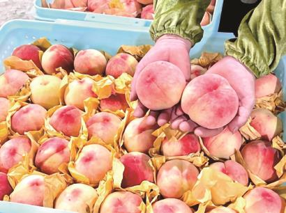 南汇水蜜桃非常娇贵,稍不注意,手上力度大了,就会在表皮留下手印,基地分拣时需要经验充足、轻拿轻放。