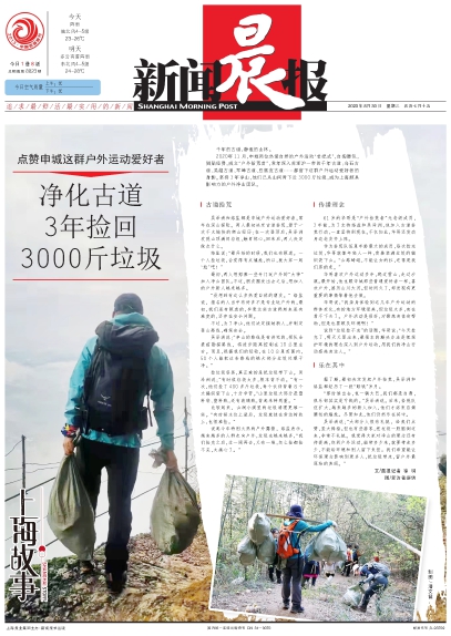 2020年11月,申城两位热爱自然的户外运动“老把式”,自掏腰包,倒贴经费,成立“户外拾荒者”,常年深入苏浙沪一带的千年古道:乌石古道、吴越古道、军嶂古道、豆腐皮古道……都留下这群户外运动爱好者的身影。坚持3年净山,他们已从山间背下近3000斤垃圾,成为上海颇具影响力的户外净山团队。