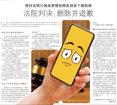 把朋友的照片做成表情包在各个微信群传阅,这件生活中不起眼的小事,其实也藏着法律风险。在上海市浦东新区人民法院审结的一起因在微信群发表情包“开玩笑”而引发的名誉权纠纷中,法院就判决被告删除表情包并向原告书面道歉。
