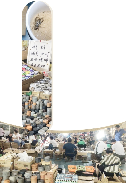 山东宁津、宁阳一带是蟋蟀的大产地,而买主相当一部分是上海爷叔。“3年没去山东了,今年去山东的上海爷叔特别多,大家都很兴奋。”徐晋说,今年很多人都是“爆仓”回来的,如果家里有100个蟋蟀盆,就买了100只回来。