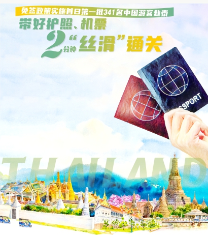现在的免签政策下,中国游客只需携带护照和赴泰机票,节省了多项材料查验和填表时间,入境后的停留时间延长至30天。相比以前繁琐的通关过程,免签政策下入境泰国的过程可以说是相当“丝滑”。