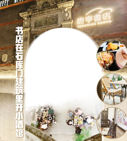 唐宁书店是去年1月初沪上新开的一家实体书店,位于具有百年历史的石库门建筑内。前段时间,有市民发现书店一楼新开出了一家泰式小酒馆,还有食客边吃边聊天。