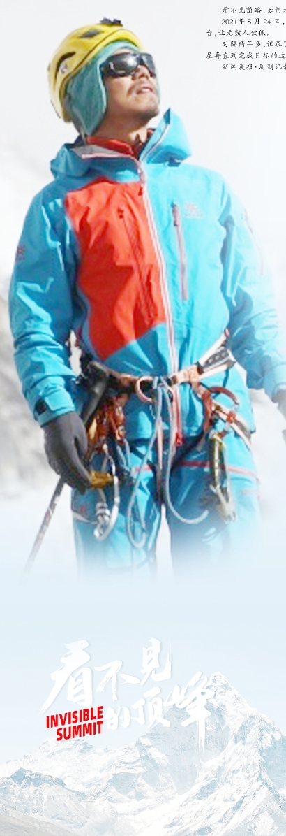 和其他大部分完成攀登珠峰壮举的登山者不同,张洪无法用眼睛丈量沿路的风景,在他前方也永远屹立着“看不见的顶峰”,但他用心感受到了人与人之间的信任,以及完全释放自己,把自己交托出去又收获回报的快乐。