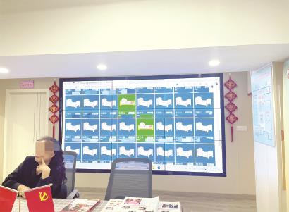 在老西门街道家床服务中心有一块大屏幕,上面显示着每个老人的状态——是否起床。