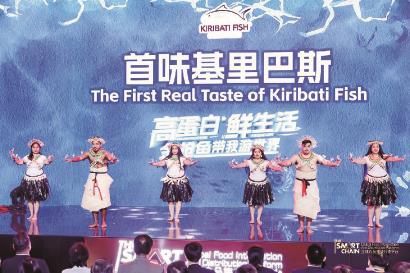 在进博会上的水产集团主题日上,水产集团通过自有运输链把KFL(基里巴斯渔业公司)品牌引入中国市场,同时借助“The Smart Chain全球食品集成分销平台”,将基里巴斯丰富的海产品带给更多国内消费者。