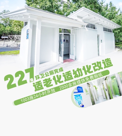 在昨天举行的“世界厕所日”主题宣传活动中,市绿化和市容管理局介绍,全市已完成227座环卫公厕的适老化适幼化改造,同时有1003座环卫公厕24小时开放,44座延长开放时间,2500余座提供免费厕纸。
