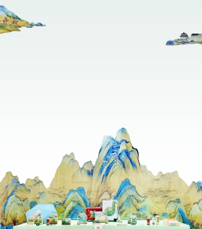 此外,以北宋王希孟创作的《千里江山图》为设计灵感制造的可折叠小夜灯、摆盘、行李箱等文创产品也吸引了不少关注。烟波浩渺的江河、层峦起伏的群山……不仅《只此青绿》的舞蹈,这些琳琅满目的文创产品也可以让人感受到祖国大好河山的壮美。