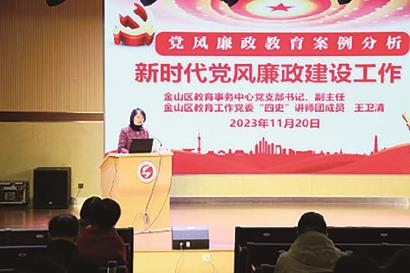 为深入开展学习贯彻新时代中国特色社会主义思想主题教育,进一步强化党风廉政建设,营造风清气正、廉洁务实的工作氛围,11月20日,上海市漕泾中学党支部邀请金山区教育事务中心党支部书记、副主任,金山区教育局原纪委干部王卫清来校作主题为《新时代党风廉政建设工作》的报告。