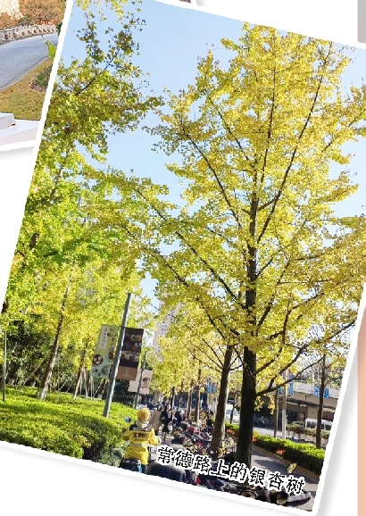 骑行共享单车来到常德路北京西路路口,一眼望去,常德路上的银杏树已经大片金黄,冬日美妙景色悄然来临。