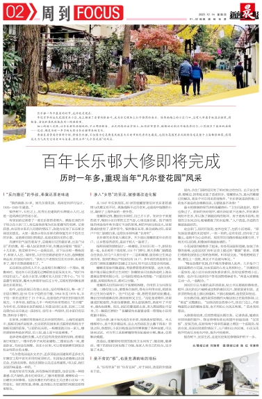 细心的游人发现,让长乐邨充满韵味的,不止那些银杏。法式风情的孟莎顶上,红砖排布整齐,楼栋的水刷石外墙色泽均匀,小花园多了簇新的座椅……这些,都是历时一年多的大修为长乐邨带来的变化。