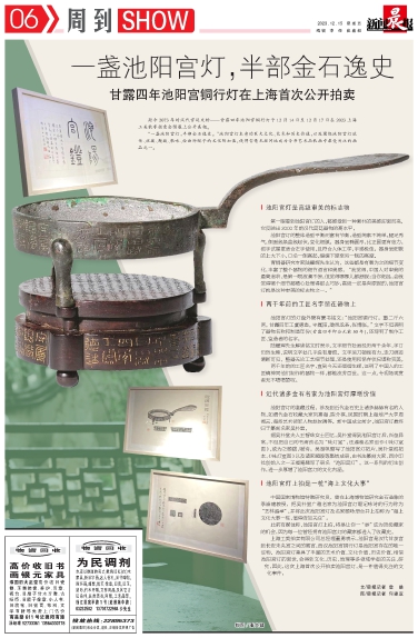 “一盏池阳宫灯,半部金石逸史。”池阳宫灯本身的巨大文化、艺术和历史价值,以及围绕池阳宫灯流传、收藏、题跋、歌咏、绘画所赋予的文化附加值,使得它毫无疑问地成为今年艺术品秋拍中最受关注的拍品之一。