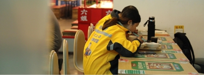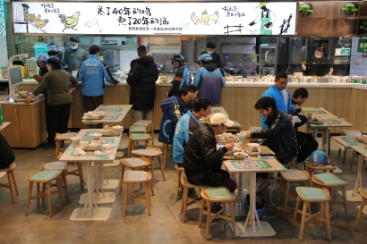 我们曾在新天地的老乡鸡里,看到很多外卖小哥就餐的景象。