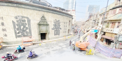 “一边是工人们在外景地如火如荼工作,一边是先睹为快的市民在拍摄。三十年前,这里是至乍浦路南段美食街的一个通道,许多企事业单位在乍浦路北段马路两旁的老房子办公,去年12月初搭脚手架的时候,路过的人们还以为是要拆除老房子进行开发,根本不当一回事,马路很冷清,来去匆匆的路人也不会留步,不知道在这里投入巨资拍摄大片,乍浦路北海宁路会成为有影响力的小马路。