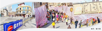 市民吴国俊在退休之后喜欢摄影,从去年12月26日到今年1月初,他去了三次“酱园弄”。1月6日,吴国俊给记者发来了一组当天拍摄的现场视频和图片:“我最初预感‘酱园弄’这里会成为网红点是电影开拍之后。没想到,你们的报道这么快就发酵,这里已经成了网红点。从胜利电影院开始,短短的乍浦路两端已经交通管制,机动车不能进入,‘酱园弄’的这面墙被围挡遮盖,还未完工的好几处场景也被遮盖。但是今天这里人很多,有一帮美术爱好者来此地写生老上海风情,大家来此打卡和轧闹猛,上海人的好奇心和怀旧情结再次被激活!”