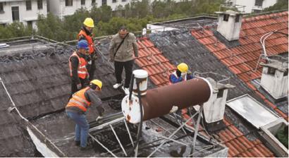 ■集中清理拆除 南桥镇拆违办依序拆除废弃的太阳能热水器,并对拆除后的楼顶进行全面清扫,做到安全隐患无死角。