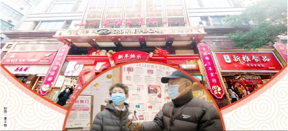 9点多的南京路步行街还没有完全热闹起来,在新雅粤菜馆大堂,一对老年夫妻已经站在年夜饭菜单海报前研究了很久。