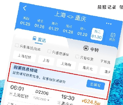 有小伙伴听闻12306客户端上新购票需求预填功能,想着赶紧把小年夜的购票需求给填好,到时候一键提交,加快抢票速度,增加购票成功率。昨天,记者也试着进入12306客户端,看看能不能把春节的车票购买需求给填了,却找不到“购票需求预填”页面。于是,记者拨打了12306客服热线,得知,暂且实现不了这个“美好愿望”。