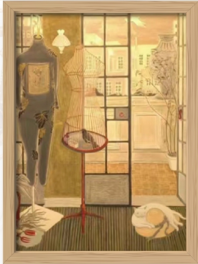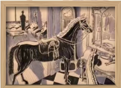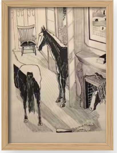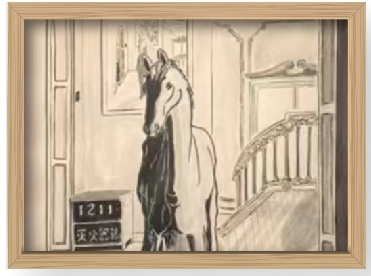 建筑师吴欢瑜认出,一些画作,素材细节取自巨鹿路675号的爱神花园主楼。比如,装饰考究的房间里,一匹马立在壁炉边。“房间一角的格局与现实对应,连壁炉的花纹都被他画出来了。”吴欢瑜感叹。