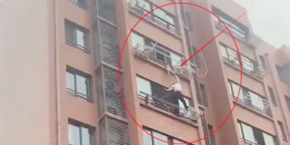 争分夺秒之下,蒋先生顺利敲开6楼邻居的门,立即来到窗边,在腰间拴好安全绳后,他整个人几乎站到了窗户外,一只手抓着室内的墙壁,一只手托举着小女孩。
