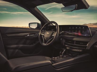 2025款CT5-V和CT5-V BLACKW ING的设计融形于意,凌厉的线条犹如划破夜空的闪电,未驾驶先感受血脉偾张的狂野气势。钻石切割外观搭配全新直列式量子矩阵前照灯,凶悍中透露着细腻之美。两款车型搭载全新CT5同款上下车迎宾灯效,并且当感应到主驾靠近时,33英寸LED中控屏背部的凯迪拉克徽标可自动点亮迎宾,让每次出行更具仪式感。
