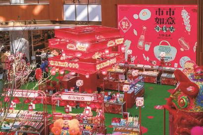 麦德龙携手敦煌艺术馆,将麦德龙甄选产品与敦煌飞天等非遗人文美学结合,推出“麦臻选系列”国潮礼盒,打造与众不同的年货。大润发、吉买盛等结合国潮民俗,通过传统元素聚客引流,拉动消费,开设“年货大街”,融合“千灯万福闹元宵”,推出妙笔春联、猜灯谜等活动。
