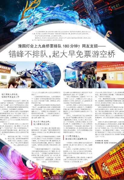 “上九曲桥要排180分钟?排不动排不动,改天再来吧!”春节前与假期里,豫园灯会人山人海,许多想上九曲桥的市民游客一看到排队等候的告示牌,要等那么长时间,望而却步。