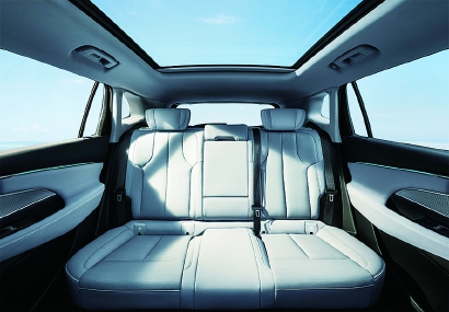 别克E5基于PURE Design纯粹设计理念,拥有同级较长的2954mm轴距和同级较大的前后排间距,轻松打造宽适座舱。前排座椅宽520mm并带有宽体悬浮头枕,配合1030mm的二排腿部空间,以及别克图书馆静音科技、带电动遮阳帘的可开启式全景天窗,提供舒适惬意的“升舱”感受。全车多处高效储物空间和悬浮中控台下方4.5L多功能储物仓,双层复式后备箱收纳,能装入全家出行所需,满足多场景出行需求。