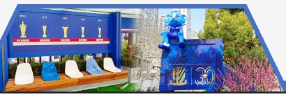2月26日下午,记者赶到位于‘八万人’附近的15路终点站,这个车站毗邻星游城。记者发现,15路终点站已经贴上了申花足球俱乐部30周年纪念涂装,车站候车厅和煤精亭上都使用了代表申花队的蓝色,候车厅里还有介绍申花队历年捧杯的记录,从1995年的甲A 联赛冠军开始一直到2023年的足协杯冠军。