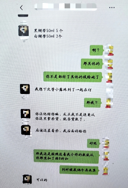 于是,她用自己的另一个微信小号,换上了客户吕某的微信头像和昵称,然后自己拿着两个手机互发,自编自导了一段对话:“再要5瓶黑绷带;2瓶白绷带,其他等别的一起再订”“只要5瓶黑绷带,其他的货暂时不要”。