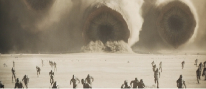 比如在该作世界观里,沙虫是沙丘星球上最强大的生物,他们身形巨大,被称为弗雷曼人称为“沙漠之主”。而续作保罗驾驭巨型沙虫驰骋沙海的壮丽场面尤为壮观,也是影片众多高光时刻之一。
